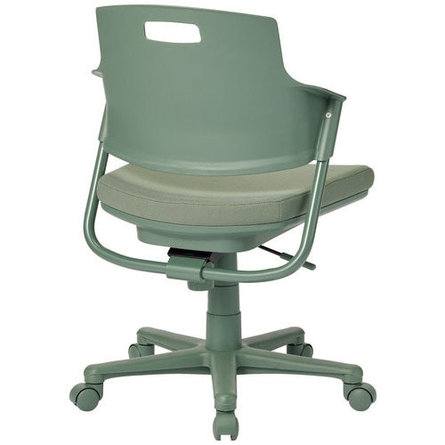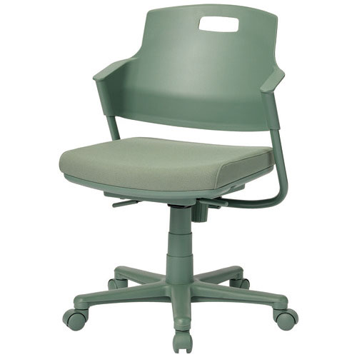 ワントーン基調のライトタスクチェア/グリーン(背パッドなし)。座スライド機能により、奥行が浅いチェアとしてもお使いいただけ、浅く腰かけても背もたれがしっかりサポートし大腿部の圧迫も軽減されるため長時間の作業も疲れにくくなります。背パッド付きは228-170よりお求めください。