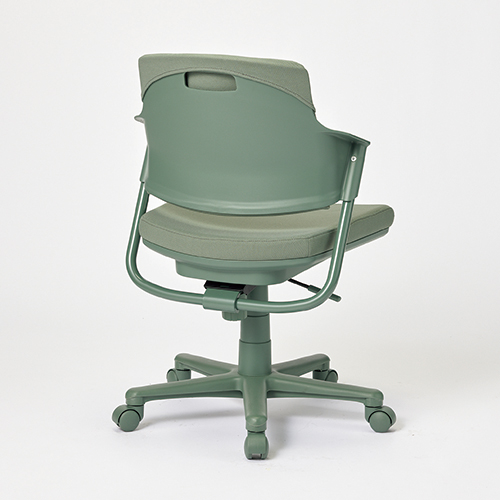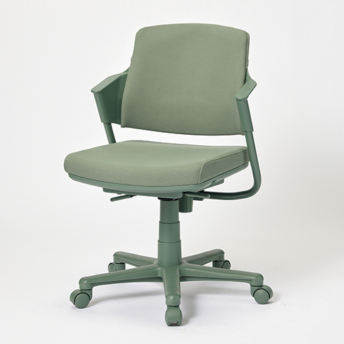 ワントーン基調のライトタスクチェア/グリーン(背パッド付き)。座スライド機能により、奥行が浅いチェアとしてもお使いいただけ、浅く腰かけても背もたれがしっかりサポートし大腿部の圧迫も軽減されるため長時間の作業も疲れにくくなります。背パッドなしは228-168よりお求めください。