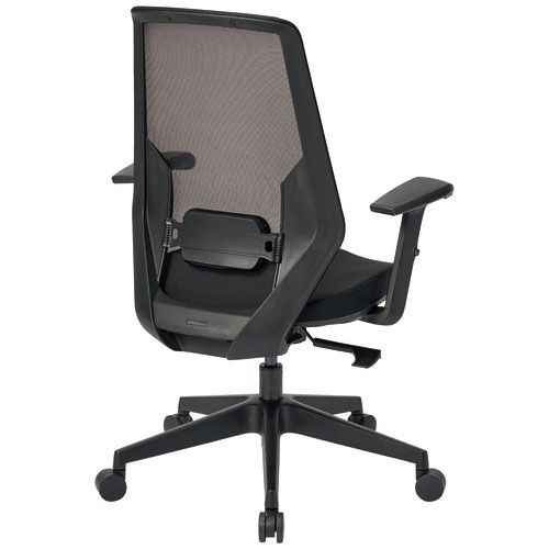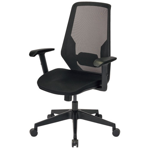 立体成型した座クッションが身体にフィットしやすいメッシュチェア/ブラック(肘付き)。オプションでヘッドレスト(727-315)の取り付けが可能です。肘なしは228-171よりお求めください。