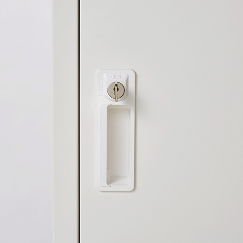 どんな空間にもマッチするシンプルな抗菌仕様の「JT2ロッカー」3人用。オプションのアジャスター(228-623)を使用すれば設置場所に多少の凹凸があっても水平に調整することが可能です。