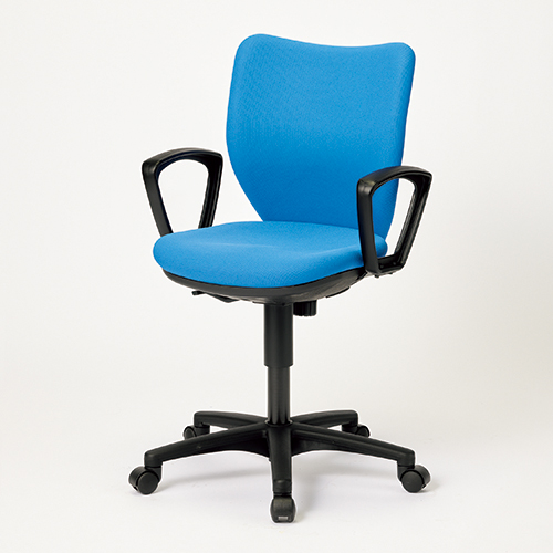 ●外形寸法(幅)[mm]:585●外形寸法(奥)[mm]:560●外形寸法(高)[mm]:830~930●質量[kg]:11.8●肘:肘付き●肘タイプ:固定式●色:ブルー●座面高[mm]:425~525●座面寸法(幅)[mm]:450●座面寸法(奥)[mm]:420●材質:背・座(張地/芯材)=布(ポリエステル)/ポリプロピレン、クッション=モールドウレタンフォーム、脚=強化樹脂、キャスター=ポリプロピレン双輪キャスター、肘=ポリプロピレン・スチール●機能:ガス圧座上下、背ロッキング ●最小出荷単位: 1