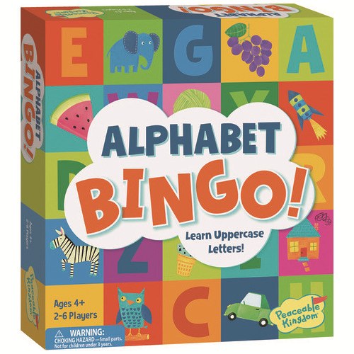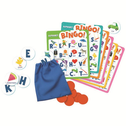●セット内容:ビンゴカード (両面印刷) 6枚、円形アルファベットカード (両面印刷) 26枚、プラスチックチップ 72枚、巾着袋 1個、日本語取扱説明書●対象:4歳以上●寸法:ビンゴカードサイズ=縦190×横165mm、プラスチックチップサイズ=直径25mm●材質:カード=紙、チップ=ポリプロピレン、巾着袋=ポリエステル、綿●プレイヤー数 : 2~6人 ●最小出荷単位: 1