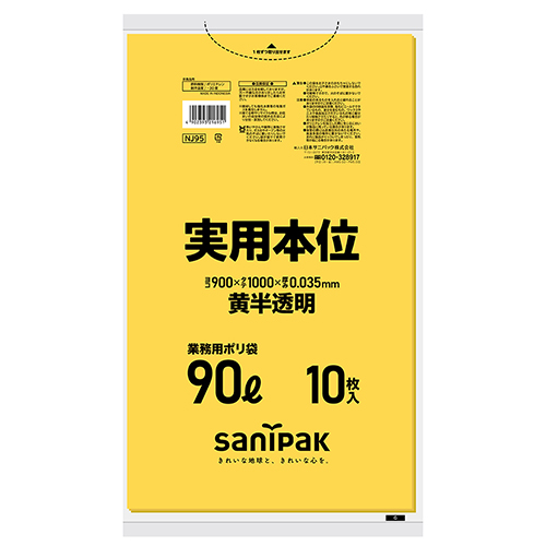 業務用ポリ袋実用本位 90L 黄半透明 10枚