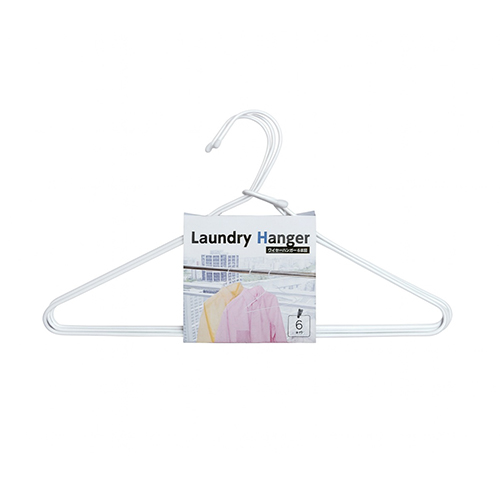 ●品目:ハンガー●入数:6本●色:ホワイト●外寸(幅×奥×高):400×230×15mm●材質:PE被膜鉄線 ●最小出荷単位: 30