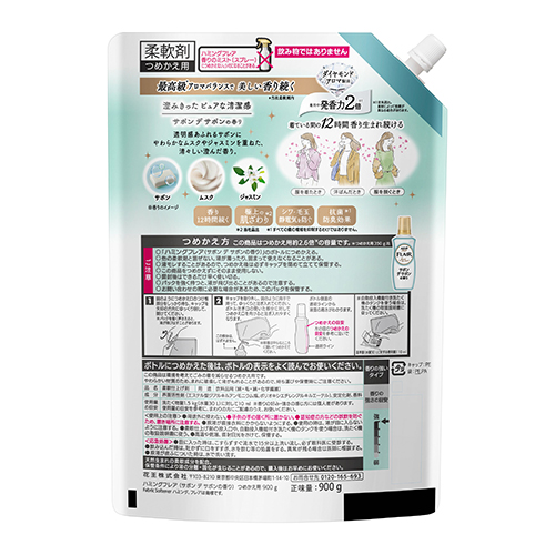 ●品目:柔軟剤●用途:衣料品用(綿・麻・合成繊維用)●種別:つめかえ用●容量:900g●香り:サボンデサボンの香り●成分:界面活性剤(エステル型ジアルキルアンモニウム塩、ポリオキシエチレンアルキルエーテル)、安定化剤、香料 ●最小出荷単位: 3
