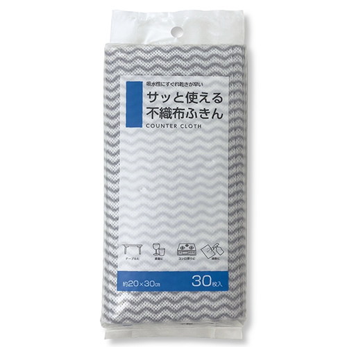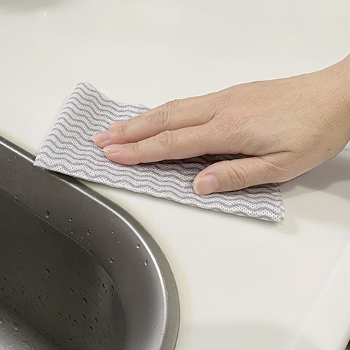 吸水性に優れた不織布タイプのふきんです。乾きが早いので衛生的。濡れても破れにくく丈夫なので、繰り返し洗って使えます。