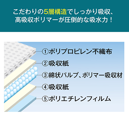 尿をゼリー状に固めて、逆戻りしにくいこだわりの6層構造。薄型なので持ち歩きに便利なコンパクトさを求める方や、毎日何回も取り替えたい方にお勧めです。