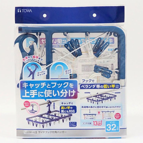 ●ピンチ数:32個●材質:本体・ピンチ=ポリプロピレン、ワイヤー=鉄線、(ポリエチレン被膜)、バネ=鋼線●キャッチ使用時外寸(幅×奥×高):600×330×325mm●フック仕様時外寸:600×330×180mm ●最小出荷単位: 24