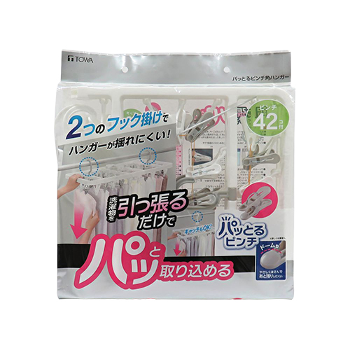 ●ピンチ数:42個●材質:本体・ピンチ=ポリプロピレン、ワイヤー=鉄線(ポリエチレン被膜)、バネ=鋼線●キャッチ使用時外寸(幅×奥×高):700×350×355mm●フック仕様時外寸:700×350×185mm ●最小出荷単位: 16