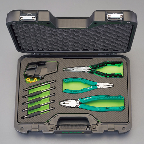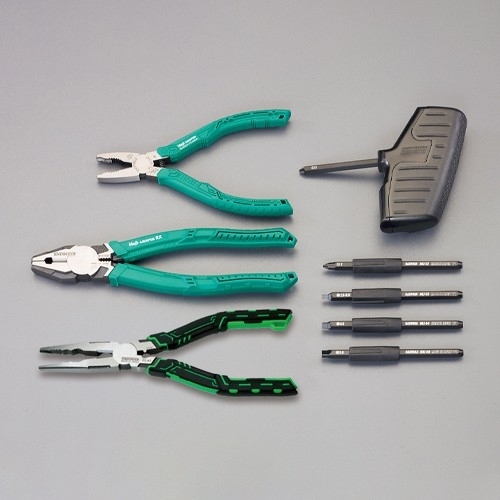 ●メーカー…エンジニア ●型番…PDS-02 ●商品名…ネジザウルスセット ●用途…潰れたトラスネジ、皿ネジ、六角穴付きボルトの取り外しに。 工場や現場での修理、整備に。 その他、設備機器、自動車、バイク、自転車、農機具、船舶、スポーツ用品のメンテナンス、日曜大工にも。 ●<セット内容> ●ねじプライヤー(160mm)…ナベ・トラスねじ用φ3~9.5mm ●ねじプライヤー(190mm)…ナベ・トラスねじ用φ2~5.5mm ●ねじプライヤー(200mm)…トラスねじ用φ3~12mm ●ねじ取りビット…(+)M3~M5(軽・重症用各1本) キャップボルト用:Hex2.5~5mm(各1本) ●ケース…・サイズ:360(W)×260(D)×75(H)mm ・コンパクトに収納でき、取っ手付きで持ち運びにも便利 ・外装はハードケース、内装は衝撃を吸収するクッション材を使用。 工具がケースの中で固定されるため、傷がつきにくい。 ●総重量…1.9kg ●ビットホルダー、ビットグリップ付 ●様々なネジトラブルに対応するベストアイテムを揃えた工具セット。 ネジ外し工具の中でも使用頻度の高い、厳選された工具を入れています。 ●※タッピングネジ、ドリリングネジ、コーススレッドなどの硬度が高いネジには使用しないでください。 ※錆や接着剤などで完全に固着したネジには使用できない場合があります。 ●参考在庫数・商品詳細・サイズ情報はメーカー(参考)URLからもご確認いただけます。 ●最小出荷単位: 1