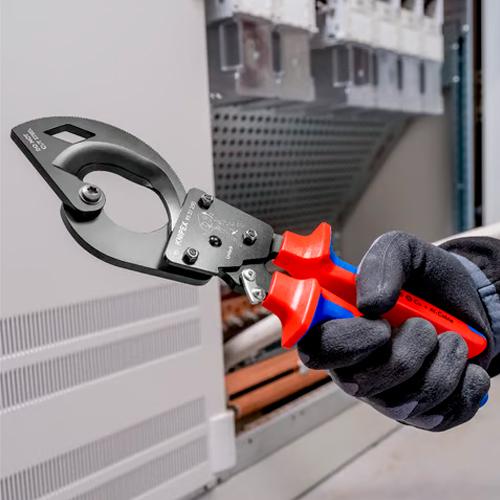 ●メーカー…KNIPEX(クニペックス) ●型番…95 31 250 ●全長…250mm ●切断能力…φ32mm(240mm2) ●重量…676g ●仕上げ…ラッカー ●ハンドル…コンフォート ●銅・アルミケーブル用(スチールワイヤーの切断はできません。) ●銅およびアルミの単線・複合線を切断することができます。 ●2段階のラチェット機構で、片手操作が可能です。 ●ハンドルはつば付きで、しっかり握ることができます。 ●挟み込み防止により、指が挟まれるのを防ぎます。 ●てこの原理を最大限に利用したデザインにより、少ない力で高い切断能力を発揮します。 ●参考在庫数・商品詳細・サイズ情報はメーカー(参考)URLからもご確認いただけます。 ●最小出荷単位: 1