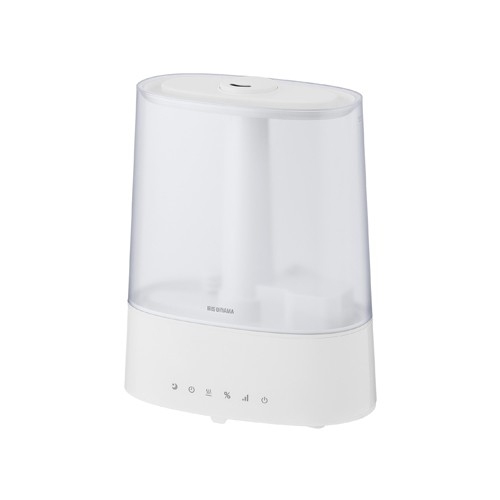 ●メーカー…アイリスオーヤマ(IRIS OHYAMA) ●型番…AHM-HUT55A ●消費電力(50/60Hz)…260W ●タンク容量…6L ●サイズ…285(W)×164(D)×359(H)mm ●重量…2kg ●連続加湿時間…約11時間(強運転時) ●加湿量切換…3段階(弱、中、強) ●最大加湿量…550ml ●適用床面積…木造和室:15m2(9畳) プレハブ洋室:25m2(15畳) ●カラー…ホワイト ●電源…AC100V ●材質…ABS ●定格…50/60Hz ●コード長さ…約1.2m ●使用温度範囲…5~35度 ●湿度設定範囲…40~70%(5%単位で設定可能) ●付属品…お手入れブラシ、カルキ防止用フェルト、アロマパッド×2枚 ●大加湿量で大容量タンクのハイブリッド加湿器です。 ●潤いで包む、わたしの毎日。 加湿器で「適切な湿度環境」を保ち、快適な毎日をサポート。 乾燥しがちな季節も、やさしい空気で。 ●潤いでウイルス対策。ウイルス対策には湿度50%以上が必要です。 ●起動後すぐに加湿を開始するので、あっという間にお部屋が潤う。 タンク容量6L。ビッグタンクで長時間加湿。 ●加湿量・湿度をお好みに設定できます。 ●360°回転吹き出し口で方向を自由に調節可能。狙った場所へ効率よく加湿できます。 ●超音波式と加熱式、それぞれのいいところをあわせたハイブリッド式の加湿器です。 ●消費電力も低く、経済的なので毎日使用しても安心です。 ●給水方法は2パターン。場所に合わせた給水方法が選べます。 [上から水を注ぐだけ]ふたを開けてそのまま給水。タンクを持ち運ぶことなく、給水ができます。 [タンクを外して給水]かんたんに取り外せるので、タンク内のお手入れもラクラク。 ●フィルターレスでフタやタンクの丸洗いが可能で、お手入れが簡単にできます。 ●軽く触れるだけで操作ができるスタイリッシュな静電タッチパネル。 LEDで加湿モードや湿度を表示します。 ●参考在庫数・商品詳細・サイズ情報はメーカー(参考)URLからもご確認いただけます。 ●最小出荷単位: 1