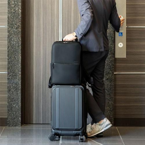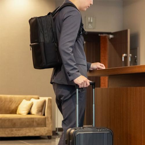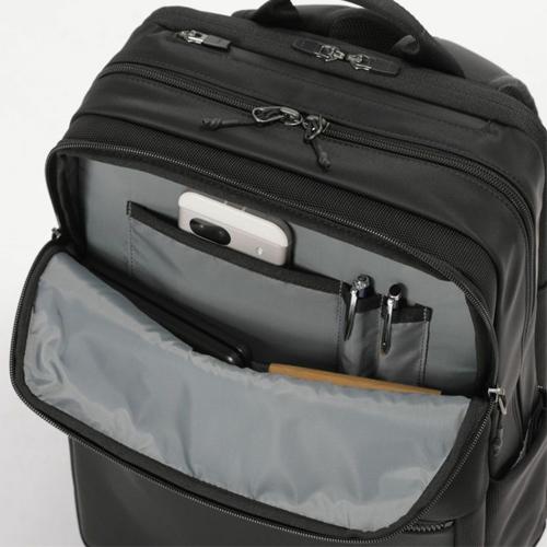 ●サイズ(W×D×H)mm…280×110×410 ●重量(kg)…0.9 ●材質…280Dナイロンツイル、2520Dコーデュラバリスティックナイロン ●対応精密機器サイズ…~15インチ ※お使いの機器によって異なります。 ●PCクッションルームサイズ…270(W)×400(H)mm ●機能…2層ブリーフ、PC・タブレット収納、ペットボトル収納、キャリーオン機能 ●前ポケットは大きく開いて内容物が見やすく、小物の整理に便利なオーガナイザー付き(ソフトなパイル生地のオープンポケット×1・ペン差し×2)で使い勝手の良い仕様となっております。 ●前面には小物収納に便利なファスナーポケットを付属。マチ幅があることで収納力がアップ。厚みのある小物もスムーズに出し入れでき、使いやすさが広がります。 ●右側はオープンポケットを備え、すぐに出し入れしやすく折りたたみ傘や小物入れなどの収納に便利です。 ●左側には、ファスナーで広げることができるオープンポケットを付属。ペットボトルなどを収納するのに便利でしっかりと保持し出し入れしやすい。 ●2層式の前面側メインルームは、小物の収納に便利なマルチポケットレイアウトでビジネス書類など効率のよい収納が実現します。 ●前面側メインルームの前面側は一番奥にはファスナーポケット、手前には収納物の視認性の高いオープンメッシュポケット×2を配置し、整頓のしやすいレイアウトです。 ●背面側には、A4サイズに対応したポケットを配置。大切な書類などの収納に適しており、四隅まで広がる設計でスペースを無駄なくご活用いただけます。 ●モバイルポケットの内装には、スマートフォンなどの機器をやさしく守るソフトなパイル生地を採用。開口部にはYKK製の止水ファスナー使用し安心です。 ●背面側メインルームにはクッション材を内蔵し、PCやタブレットなどの大事な機器を衝撃から守ります。内装は収納物に優しいソフトなパイル生地を使用し、繊細な機器にも配慮しています。 ※機器の対応サイズ:機器によって入らない可能性がございます。あくまで目安としてお考え下さい。 ●モバイルポケットと背面側メインルームには、倒れた状態でロックがかかる「セミオートマチックスライダー」の引手を採用。意図せずに開いてしまうことを未然に防ぎつつ、スムーズな開閉を実現しています。 ●前ポケットと前面側メインルームのファスナーの引手には握りやすく持ちやすいジッパープルを付属、操作しやすくスムーズな開閉を実現。 ●背面・肩ベルト裏面は通気性のよいメッシュ構造になっています。リュックとしてご使用時、背中が蒸れにくいので快適にご利用いただけます。 ●参考在庫数・商品詳細・サイズ情報はメーカー(参考)URLからもご確認いただけます。 ●最小出荷単位: 1