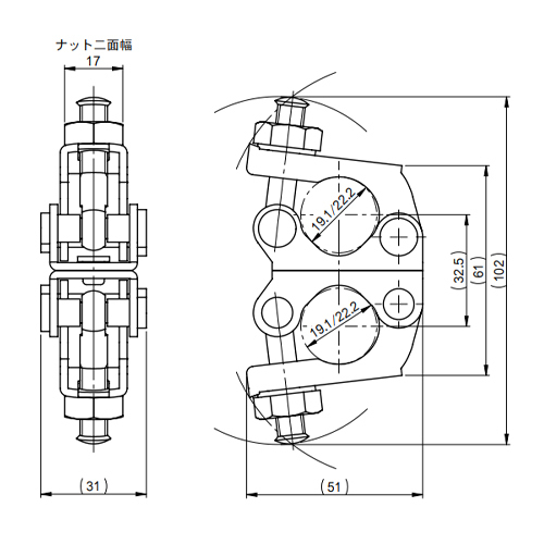 φ19.1-22.2mm 二連クランプ(直交)