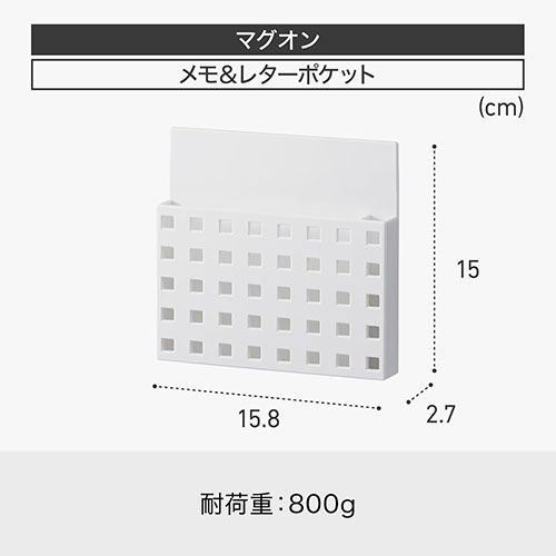 ●外寸(幅×奥×高):158×27×150mm●材質:ABS樹脂、ゴムマグネット●耐荷重約800g●色:ホワイト●原産国:日本 ●最小出荷単位: 40
