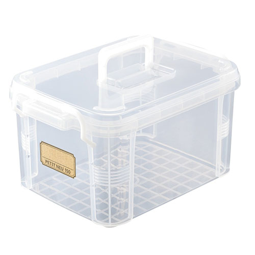 フタ付きでしっかりロックできるので中身が飛び出すこともありません。ハンドル付きで持ち運びやすい収納ボックスです。積み重ねも可能なので工具収納など便利に活用できます。500ml缶が12本入るサイズ感です。