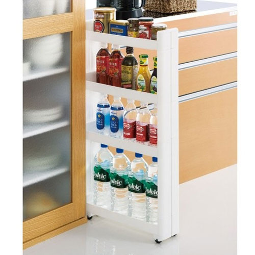キッチン・ランドリー・サニタリにある隙間を有効活用する4段タイプのワゴンです。幅は12.5cm奥行は45cmです。キャスター付きなので出し入れ、移動が楽々です。