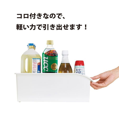 シンク下の収納に便利な収納ストッカーです。コロ付きなので取り出すのも元に戻すのも簡単です。調味料などボトル類の収納にピッタリです。
