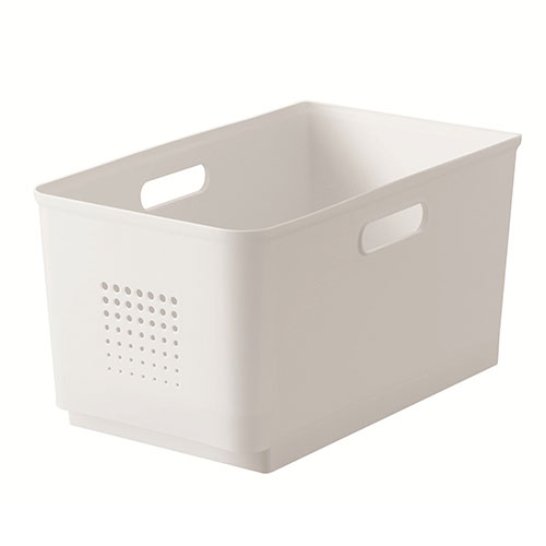 キッチン・パントリーのための使い勝手のいい収納ボックス。吊り戸棚で使いやすいコロ付き収納ボックスです。前面のグラデーションメッシュで見せる収納と隠す収納の両方を兼ね備えたおしゃれなパントリー収納。キッチンペーパーやジッパー袋の収納におすすめです。