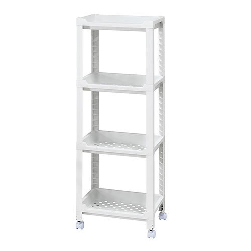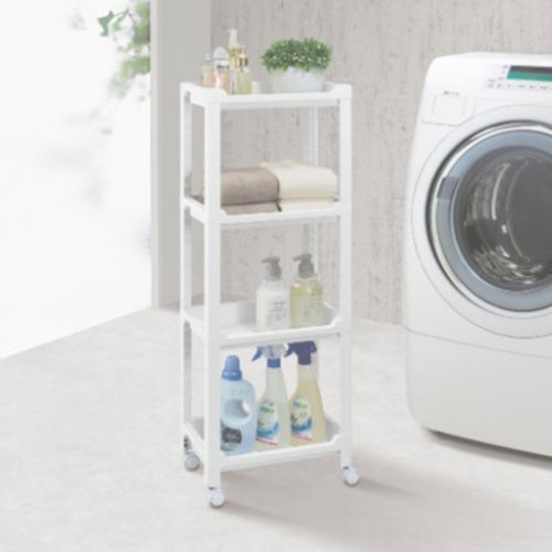 支柱がL字でシンプルな重厚感のあるデザインです。支柱は組んだ後も取り外しが可能です。4段タイプでキャスター付きです。