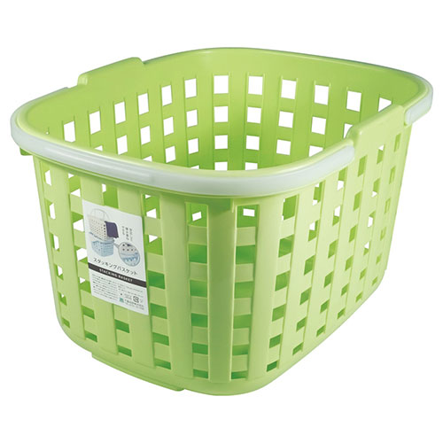 積み重ねできる便利なバスケットです。間口が大きく洗濯物の出し入れがしやすいバスケットです。持ち運びしやすいハンドル付です。
