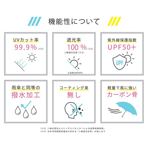 軽量でしなやかなカーボン素材を親骨と受骨に採用することで、超軽量と高い強度を実現させた晴雨兼用傘です。