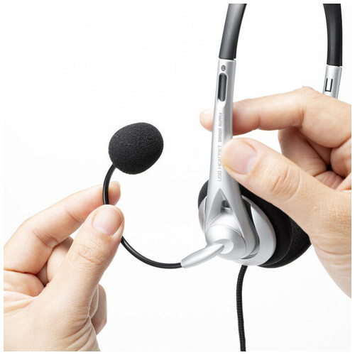 周りの騒音を拾いにくい単一指向性マイクを採用したUSB Type-Cヘッドセット。