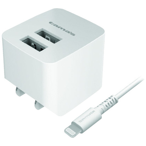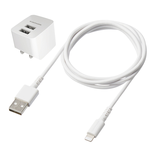 ●外形寸法(幅)[mm]:35●外形寸法(奥)[mm]:30●外形寸法(高)[mm]:39●質量[g]:本体=36g、ケーブル=27●定格入力電圧:AC100-240V 50/60Hz●定格出力:12W(全ポート合計最大)●ケーブル長:1m●ケーブル仕様:USB Type-A to Lightning●保証期間:6カ月間●色:ホワイト●USBポート:USB Type-A×2 ●最小出荷単位: 1