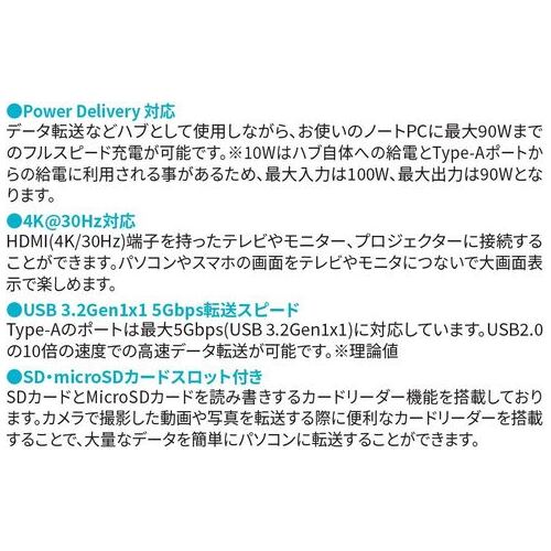 ●外形寸法(幅)[mm]:284●外形寸法(奥)[mm]:28●外形寸法(高)[mm]:10●質量[g]:44●電源:バスパワー●インターフェース:USB 5Gbps/2.0●対応機種:USB Type-Cポートを装備したWindows、Mac、iPad搭載器●ケーブル長:0.15m●保証期間:6カ月間●色:シルバー●出力ポート:USB Type-C(PD)×1※充電専用、USB Type-C(USB 2.0)×1、USB Type-A 5Gbps×1、USB Type-A(USB2.0)×1、HDMI(最大4K/30Hz)×1、SD/microSD●PD最大90W出力 ●最小出荷単位: 1
