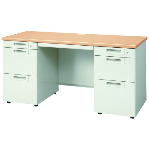 ●外形寸法(幅)[mm]:1400●外寸:奥600×高700mm●引出内寸:右袖上段=幅328×奥442×高75、中段=幅328×奥442×高219、下段=幅317×奥527×高295、左袖上段=幅328×奥442×高59、中段・下段=幅317×奥527×高265mm●下肢有効空間:幅592×高625mm●質量[kg]:67●色(天板):ホワイトメープル●天板厚[mm]:30●最大積載質量:天板=140kg、トレー=5kg、左右引出上段・右引出中段=10kg、左引出中段・下段・右引出下段=20kg●仕切板枚数:SS1枚・S1枚・M1枚・L3枚付●機能:天板配線口、対向配線可能、袖引出各段ラッチ機構、オールロック機能●付属品:ペントレー2個付●材質:天板=メラミン樹脂化粧板(ポストフォーム加工)、エッジ=ABS、本体・幕板=鋼板(樹脂焼付塗装)●鍵枚数:2×2枚 ●最小出荷単位: 1