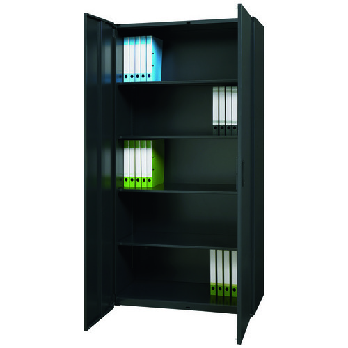 ●外形寸法(高)[mm]:1770●外寸:幅900×奥450mm●質量[kg]:62.9●設置タイプ:下置●アジャスター:無●色:ブラック●内形寸法(高)[mm]:1700●内形寸法:幅864×奥418mm●棚板厚:15mm●棚板可動ピッチ:20mm●最大積載質量:51kg/棚1段あたり●付属棚板枚数:4枚●機能:180度開閉扉、ラッチ機能付●付属品:鍵2枚付●材質:本体・棚板=スチール(樹脂焼付塗装)、取っ手=ABS樹脂 ●最小出荷単位: 1