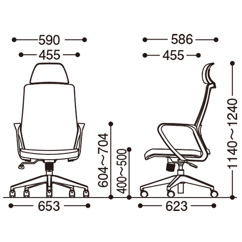 事務用チェアGZのオプション、GZ用ヘッドレスト/ネイビー。GZチェア本体(228-499)に取り付けた場合、チェア全高は1140~1240mmになります。