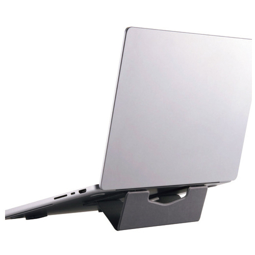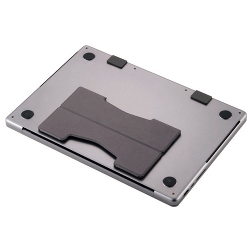 装着したまま持ち運び可能!ノートパソコンの底面に貼り付けて使用する折りたたみ式スタンド。