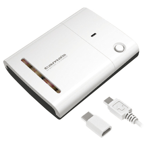 microBケーブル(Type-C変換付)付属の乾電池式モバイルバッテリー。