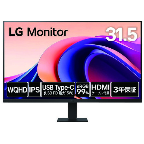 ●質量[kg]:6.5●画面サイズ:31.5型●パネル仕様:IPS●メーカー名:LG●消費電力:29W●最大表示解像度:2560×1440●輝度:250cd/㎡●応答速度:5ms●位置調整:約-5~20°●保証期間:3年間●規格:100×100mm ●最小出荷単位: 1