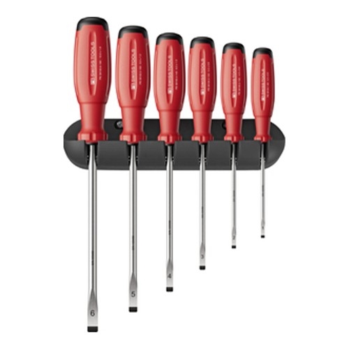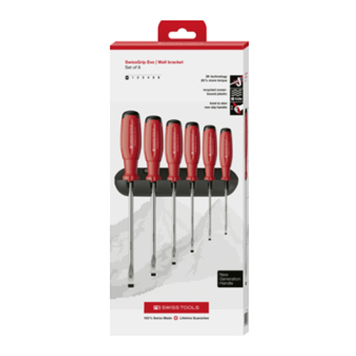 ●メーカー…PB SWISS TOOLS ●型番…PB38240.H CBB ●サイズ…(-)3.5×0.5mm (-)4.0×0.6mm (-)5.5×0.8mm (-)6.5×1.0mm (-)8.0×1.2mm (-)10×1.6mm (6本組) ●軸長…3.5×0.5:90mm 4.0×0.6:100mm 5.5×0.8:120mm 6.5×1.0:140mm 8.0×1.2:160mm 10×1.6:180mm ●総重量…826g ●付属品…壁掛けホルダー ●SwissGrip Evoの優れた人間工学により、快適で疲れにくい作業を実現 ●グリップの端(お尻の部分)に、ドライバーの先端形状とサイズを表示 ねじの形状・サイズを素早く識別可能です。 ●平行な刃先がねじの溝にしっかり密着するため、回す途中で滑ってしまうのを防ぎます。 ●最適化されたハンドル形状により、最大限のパワー伝達と圧倒的な高トルクを実現しています。 ●滑りにくく、グリップ力があるため、あらゆる状況下で安全かつ正確に使用可能です。 ●耐久性に優れています。 ●バネ鋼ベースの特殊合金で弾性に優れ、高い硬度を保ちます。 ●ブレード部のシリアル番号で原料段階の製造過程まで遡ることができます。 ●紙箱仕様 ●【SwissGrip Evoの特長】 ・従来の丸形グリップから、わずかに三角形に近い(トライアングル形状)に改良 ・グリップ形状により、握ったときに手のひらにしっかりフィットします。 ネジを回すためのトルク伝達率が従来品より約25%も向上しています。 少ない力で、より確実にネジを締める・緩めることができます。 ●【3層構造(3Kコンポジット)のハイテク素材】 内側(コア):力をしっかり受け止める硬い素材(リサイクル素材) 中間:内側のコアと外側の層を結合する素材 外側(表面):手に吸い付くような滑りにくい柔らかい素材 ●参考在庫数・商品詳細・サイズ情報はメーカー(参考)URLからもご確認いただけます。 ●最小出荷単位: 1