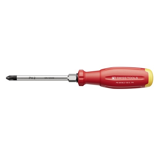 ●メーカー…PB SWISS TOOLS ●型番…PB 38190.2-100 S ●サイズ…#2 ●軸長…100mm ●軸径…7mm ●全長…209mm ●適合ねじ…M3~5 ●六角部レンチサイズ…10mm ●重量…105g ●手元六角付 スパナ・レンチの併用で、トルクをかけたねじ締めや緩め作業が可能です。 ●精密な刃先がねじに最適にフィットします。 ●バネ鋼ベースの特殊合金で弾性に優れ、高い硬度を保ちます。 ●最適化されたハンドル形状により、最大限のパワー伝達と圧倒的な高トルクを実現 ●油や水で濡れた手で握っても滑りにくく、安全で正確に作業ができます。 ●化学的耐性や機械的強度があり、過酷な現場での使用に耐えます。 ●グリップの端(お尻の部分)に、ドライバーの先端形状とサイズを表示 ねじの形状・サイズを素早く識別可能です。 ●ブレード部のシリアル番号で原料段階の製造過程まで遡ることができます。 ●【SwissGrip Evoの特長】 ・従来の丸形グリップから、わずかに三角形に近い(トライアングル形状)に改良 ・グリップ形状により、握ったときに手のひらにしっかりフィットします。 ネジを回すためのトルク伝達率が従来品より約25%も向上しています。 少ない力で、より確実にネジを締める・緩めることができます。 ●【3層構造(3Kコンポジット)のハイテク素材】 内側(コア):力をしっかり受け止める硬い素材(リサイクル素材) 中間:内側のコアと外側の層を結合する素材 外側(表面):手に吸い付くような滑りにくい柔らかい素材 ●参考在庫数・商品詳細・サイズ情報はメーカー(参考)URLからもご確認いただけます。 ●最小出荷単位: 1
