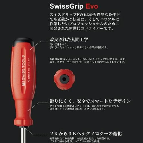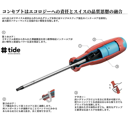●メーカー…PB SWISS TOOLS ●型番…PB38685.CBB ●用途…Oリングの取り外しや各種こじり作業に ●<セット内容>…・120°先曲がりタイプ ・ストレートタイプ ・125°先曲がりタイプ ・90°先曲がりタイプ ・フックタイプ (5点セット) ●全長…153mm ●軸径…3mm ●軸長…75mm ●材質…特殊スチール ●総重量…236.5g ●先端の形状が異なる5種類の工具、パッキンの取り付け、取り外しに万能です。 ●ツールロール付で持ち運びに便利です。 ●精密加工の先端採用、硬度、耐摩耗性に優れています。 ●人間工学に基づいたデザインで、快適で疲れにくい作業を実現しました。 ●油や水で濡れた手で握っても滑りにくく、安全で正確に作業ができます。 ●化学的耐性や機械的強度があり、過酷な現場での使用に耐えます。 ●グリップエンドには先端形状アイコンを表示し、作業中でも欲しい1本を瞬時に識別できます。 ●ブレード部のシリアル番号で原料段階の製造過程まで遡ることができます ●【SwissGrip Evoの特長】 ・従来の丸形グリップから、わずかに三角形に近い(トライアングル形状)に改良 ・グリップ形状により、握ったときに手のひらにしっかりフィットします。 ネジを回すためのトルク伝達率が従来品より約25%も向上しています。 少ない力で、より確実にネジを締める・緩めることができます。 ●【3層構造(3Kコンポジット)のハイテク素材】 内側(コア):力をしっかり受け止める硬い素材(リサイクル素材) 中間:内側のコアと外側の層を結合する素材 外側(表面):手に吸い付くような滑りにくい柔らかい素材 ●参考在庫数・商品詳細・サイズ情報はメーカー(参考)URLからもご確認いただけます。 ●最小出荷単位: 1