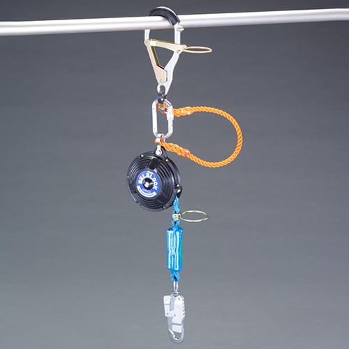 ●最大使用荷重…85kg(装備重量含む) ●落下衝撃荷重…2.6kN ●ベルト幅…18mm ●ベルト長…6m ●本体サイズ…162×162×68mm ●重量…2.2kg ●材質…本体:ナイロン樹脂 ベルト:ポリエステル・アラミド繊維 ●上部フック開口幅…50mm ●架空通信線の吊り線・足場ボルトに取り付け、電柱や梯子昇降時の万一の墜落を防止する器具です。 ●万一の墜落時にはベルトの繰出しが即座にロックされて墜落を阻止します。 ●墜落時の衝撃荷重を低減するショックアブソーバを標準装備しています。 ●操作棒を使用して吊り線に掛けて使用します。※操作棒は付属していません。 ●参考在庫数・商品詳細・サイズ情報はメーカー(参考)URLからもご確認いただけます。 ●最小出荷単位: 1