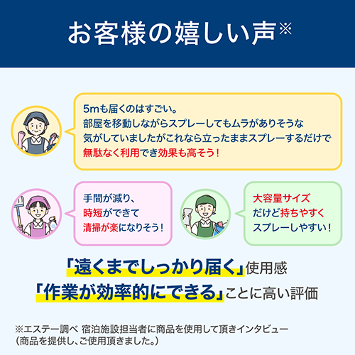 シューティングノズル搭載で5m先まで消臭成分を噴射でき、大空間をまるごと効果的に消臭します。600mLの大容量サイズです。重さを感じにくく噴射しやすい、手持ち部分にくびれのある形状です。水リッチな非危険物処方です。香りでごまかさない無香タイプです。