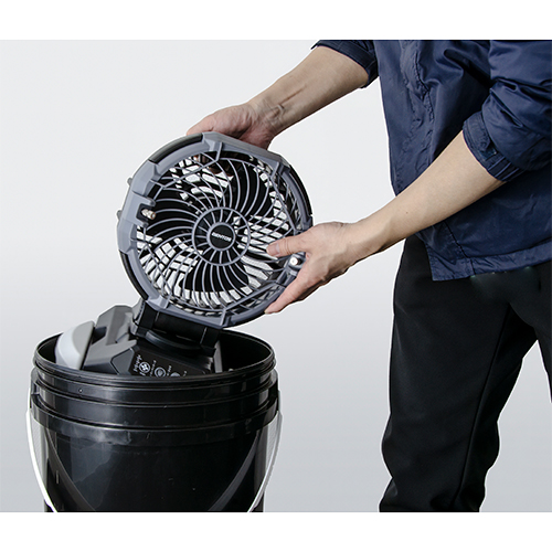 ●セット内容:ファン本体、専用ACアダプター(13.5V/1.6A)、バケツ(25L)、ミストノズルx4、リモコン(CR2025×1個付属)●設置時寸法:幅330×奥行330×高さ755mm●保管時寸法: φ330x高さ420mm●質量:3.837kg●対応バケツ径:26㎝~33㎝●バケツ容量:25L (19.5cmの水位時) バケツサイズφ33xH42㎝●ファンのみ:幅280x奥行262x高さ370mm、2897g●噴霧量:スプレーモード弱 2.5L/h、スプレーモード中 3L/h、スプレーモード強 4.5L/h、スプレーモード最強 6.0L/h、3.7V/4000mAh x 6本使用●首振り角度:90°●連続運転時間:【ファンモード(スイングなし・ミストなし)】Eco:64.0H/Mid:27.0H/Hi:14.0H/Max:8.5H【ファンモード(スイングあり・ミストなし)】Eco:30.5H/Mid:19.0H/Hi:11.0H/Max:7.5H【ファンモード(スイングなし・ミスト弱)】Eco:22.0H/Mid:15.5H/Hi:10.0H/Max:7.0H【ファンモード(スイングあり・ミスト弱)】Eco:16.0H/Mid:12.0H/Hi:8.5H/Max:6.0H【ファンモード(スイングなし・ミスト中)】Eco:18.5H/Mid:13.5H/Hi:9.0H/Max:6.5H【ファンモード(スイングあり・ミスト中)】Eco:14.0H/Mid:11.0H/Hi:8.0H/Max:6.0H【ファンモード(スイングなし・ミスト強)】Eco:16.5H/Mid:12.5H/Hi:8.5H/Max:6.5H【ファンモード(スイングあり・ミスト強)】Eco:13.0H/Mid:10.0H/Hi:7.5H/Max:6.0H【ファンモード(スイングなし・ミスト最強)】Eco:14.5H/Mid:11.0H/Hi:8.0H/Max:6.5H【ファンモード(スイングあり・ミスト最強)】Eco:11.5H/Mid:9.5H/Hi:7.0H/Max:5.5H●保証期間:1年間 ●最小出荷単位: 1