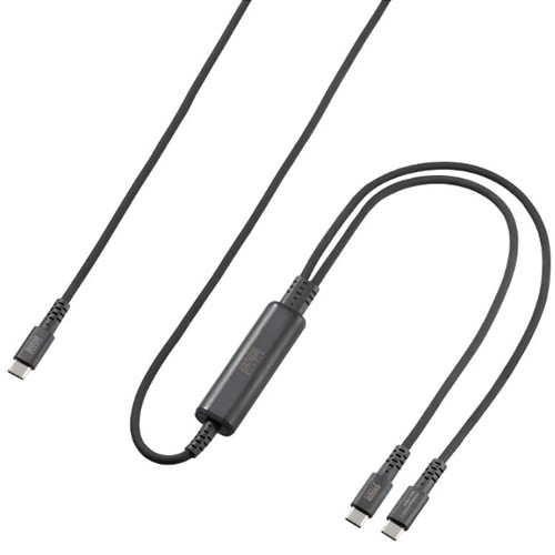 ●メーカー…サンワサプライ ●型番…KU-CCP100D12BK ●コネクタ形状…USB2.0 Type-Cコネクタオス - USB2.0 Type-Cコネクタオス×2 ●規格…USB2.0/USB1.1 ●ケーブル長…1.2m ●ケーブル径…4.2mm ●USB PD(USB Power Delivery)…最大PD100W(DC20V/5A) ●重量…約72g ●対応機種…<パソコン> 各社パソコン ※USBポート(USB Type-Cメス)を搭載している機種に対応します。 <端末機器> 各社タブレット・スマートフォン ※USBポート(USB Type-Cメス)を搭載している機種に対応します。 ●対応機種…<周辺機器> Type-Cコネクタ(メス)を搭載している周辺機器、ハードディスクなど ※使用環境、使用機種により対応できない場合もあります。 <USB充電器> USB Type-Cコネクタメス出力対応の充電器 ●USB Type-C対応機器を2台同時に接続できる二股ケーブル充電とデータ通信を同時に行えます。 ●最大100WのPower Deliveryに対応。接続機器に合わせて、自動で電力を分配します。 ●取り回しのしやすい1.2mの長さで、デスク周りや移動先でも快適。 ●やわらかく断線しにくいシリコン素材を使用。長時間の使用でも絡まりにくい。 ●すっきりとまとめて持ち運べる、同素材のシリコン製ケーブルタイ付属。 ●参考在庫数・商品詳細・サイズ情報はメーカー(参考)URLからもご確認いただけます。 ●最小出荷単位: 1