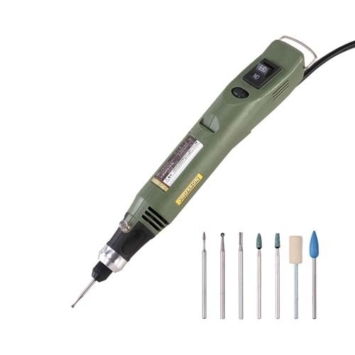 ●メーカー…キソパワーツール ●型番…26800 ●ブランド名…プロクソン(PROXXON) ●用途…ガラス彫刻、一般彫刻、彫金、模型工作、穴あけ、研磨 ●電源…AC100V(50/60Hz) ●消費電力…15W ●回転数…7,000~16,500rpm (無段電子コントロール付き) ●サイズ…195(W)×29(D)×35(H)mm ●重量…160g ●定格使用時間…15分 ●ビットサイズ…軸径φ2.35mm専用 ●付属品…・ダイヤモンドビット2種 各1本、ハイスビット2種 各1本 軸付き砥石(GC)2種 各1本、純毛バフ1本、シリコンバフ1本 ・専用ビットケース 1個 ●小型強力モーター搭載 ●シャフト加工を施し先端部の軽量及び高い回転精度を実現。 ●無段電子コントロールで回転数を7000~16500rpmで調節可能。 ●持ちやすいゴムグリップ ●作業終了後、壁に引っ掛けることができるフック付き ●二重絶縁構造 ●参考在庫数・商品詳細・サイズ情報はメーカー(参考)URLからもご確認いただけます。 ●最小出荷単位: 1