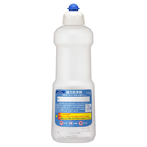 パワークリーナーに使用できる、強力洗浄剤用つめかえ容器です。希釈に便利な計量目盛り付きです。ラベルの色で他のつめかえ容器と識別しやすく、長期間の使用でもラベルがはがれにくい容器です。