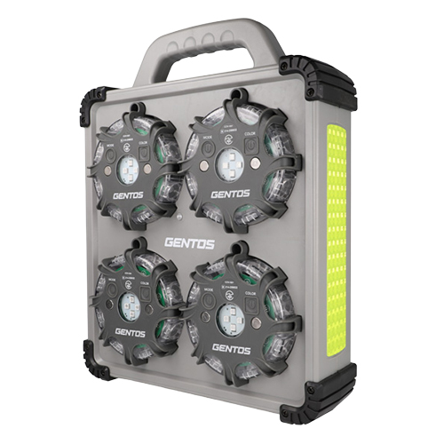 ●使用光源:高輝度チップタイプ3色(赤色・青色・黄色)LED×12個(1ユニットあたり)●視認距離(約):【メインライト(点滅)】夜間:1000m / 昼間:500m●使用電池:リン酸鉄リチウムイオン充電池 3.2V 4000mAh 12.8Wh内蔵(1ユニットあたり)●充電時間(約):12時間●電池寿命:充放電 約400回●点灯時間(約):【赤】12時間(点灯)/ 20時間(リレー点滅(スロー))/ 47時間(リレー点滅(クイック))/ 9時間(リレー点滅(フェード))/ 32時間(リレー点滅(2個同時))/ 26時間(リレー点滅(4個同時))/ 27時間(一斉点滅)、【青】21時間(点灯)/ 25時間(リレー点滅(スロー))/ 60時間(リレー点滅(クイック))/ 15時間(リレー点滅(フェード))/ 52時間(リレー点滅(2個同時))/ 34時間(リレー点滅(4個同時))/ 49時間(一斉点滅)、【黄】14時間(点灯)/ 23時間(リレー点滅(スロー))/ 55時間(リレー点滅(クイック))/ 10時間(リレー点滅(フェード))/ 35時間(リレー点滅(2個同時))/ 30時間(リレー点滅(4個同時))/ 44時間(一斉点滅)、150時間(スタンバイモード)●保護等級:耐塵・1m防水仕様(IP67準拠)、耐衝撃性(IK08準拠)●落下耐久:3m落下耐久●本体サイズ(約):【ワーニングライトユニット】幅126.0×高119.0×奥39.0mm、【専用充電ケース】幅285.0×高355.0×奥79.0mm●本体質量(約):【ワーニングライトユニット】284g(1ユニットあたり)、【専用充電ケース】1039g●付属品:専用充電ケース、専用ACアダプター、反射ステッカー×8 ●最小出荷単位: 1