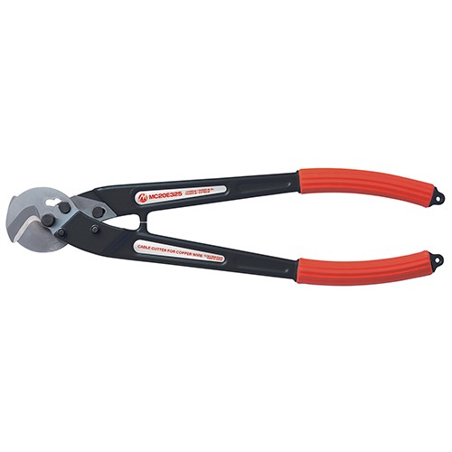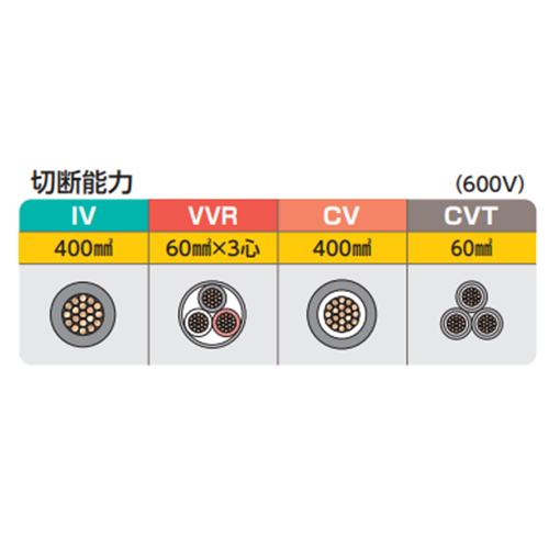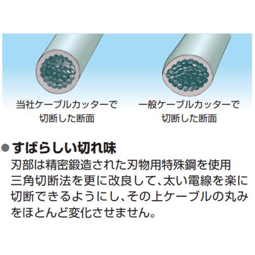 ●メーカー…ミノル工業 ●型番…MC20E325 ●切断能力…IV線:400mm2 VVR線:60mm2×3心 CV線:400mm2 CVT線:60mm2 ●最大切断能力…φ35mm ●全長…605mm ●重量…2230g ●ハンドル材質…アルミ合金 ●銅線専用 ●刃部は精密鍛造された刃物専用特殊鋼を使用、太い電線を楽に切断できるようにし、ケーブルの丸みをほとんど変化させません。 ●倍力(オートギアシフト)機構により、ハンドル荷重が約1/2に! ●A:てこ方式→B:倍力(オートギアシフト)機構→C:てこ方式 A:刃物が被覆を切断するまでは、てこ方式(ハンドル荷重が軽い範囲) B:銅線の切り始めから半分以上切断するまでには、倍力機構(オートギアシフト機構)切替え切断(最も力を必要とする部分) C:銅線が残り少なくなった時点で再びてこ方式切断 ●<注意> ・活線作業には絶対に使用しないでください。感電の恐れがあり、非常に危険です。 ・指定された電線以外には使用しないでください。 ・切断能力以内でご使用ください。 ・ご使用前に各部に損傷がないかチェックし、損傷がある場合は修理に出してください。 ・高所作業の際は、しっかりした足場の確保と工具の落下にご注意ください。事故やケガの恐れがあります。 ●参考在庫数・商品詳細・サイズ情報はメーカー(参考)URLからもご確認いただけます。 ●最小出荷単位: 1