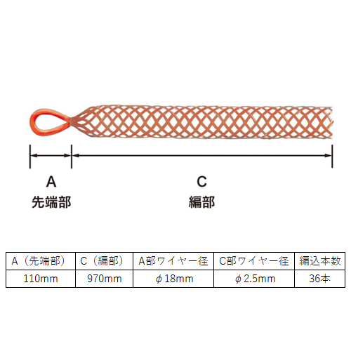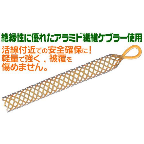 ●メーカー…ミノル工業 ●型番…MC80060INS ●用途…電線・ケーブルの引き込み作業に ●ケーブルサイズ…φ59~φ68mm ●作業引張強度…17.6kN(1800kgf) ●全長…1070mm ●メッシュ長…970mm(二重編) ●重量…390g ●材質…ワイヤー部:アラミド繊維(ケブラー) ●絶縁性に優れているので、活線付近での配線作業の安全確保が測れます。 ●軽量でしかも強く、ケーブルの被覆も傷めず、作業性に優れています。 ●メッシュは二重編仕様 ●【使用方法】 長手方向に圧縮し、外径がふくらんだ所に電線を侵入します。 侵入後、グリップを軽く開口部に向けてしごき、ケーブルに密着させてから、尾端(端末に近い場所)を1ヶ所のみバインド(針金かビニールテープ等)してください。 ●※ケーブル挿入時の全長は10%~30%短くなります。 ●参考在庫数・商品詳細・サイズ情報はメーカー(参考)URLからもご確認いただけます。 ●最小出荷単位: 1