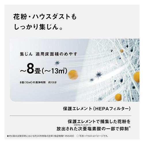 ●メーカー…パナソニック ●型番…F-MLB400C-W ●適用床面積…30m2(18畳) ●消費電力(静音/中/強)…6/10/27W ●タンク容量…0.9L ●サイズ…280(W)×185(D)×450(H)mm ●重量…5.7kg ●フィルター寿命…約7年 ●運転モード…弱・中・強・自動・おやすみ ●付属品…塩タブレット約100粒、除菌フィルター、保護エレメント(HEPAフィルター)、電極ユニット、防カビユニット ●カラー…ホワイト ●コードの長さ…1.8m ●電源…100V ●運転音(dB)…強:48、中:33、弱:15 ●風量(m3/min)…強:2、中:1、弱:0.3 ●連続運転時間(時間)…強:6.1、中:10.5、弱:23.5 ●除菌フィルターに次亜塩素酸水溶液を浸透させ、吸引した空気を洗浄。キレイになった空気とともに、気体状の次亜塩素酸を放出することで空間を清潔に。 ●HEPAフィルターによる集じん機能搭載 キャッチした菌・ウイルスも抑制 ●塩自動ユニットが補充タイミングを検知して投入。都度入れる手間がなく便利です。 ●料理や生ごみの臭いなど、気になる生活臭を分解消臭します。 ●使いやすい天面パネルで、デジタル表示は現在湿度の目安を1%単位でお知らせ。さらに、塩タブレット補充、エラーコードもわかります。 ●A4サイズに収まりコンパクトですが、適床面積は18畳です。 ●排水トレイは凹凸を減らしフラット化し、お手入れも簡単です。 ●交換部品の長寿命化で、ランニングコスト1/3になりました。 ●直感的でわかりやすいインターフェースとシンプルさを両立した操作部デザイン ●キャスター付き ●※喫煙環境では使用しないでください。 ●参考在庫数・商品詳細・サイズ情報はメーカー(参考)URLからもご確認いただけます。 ●最小出荷単位: 1
