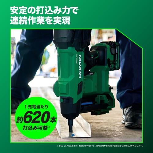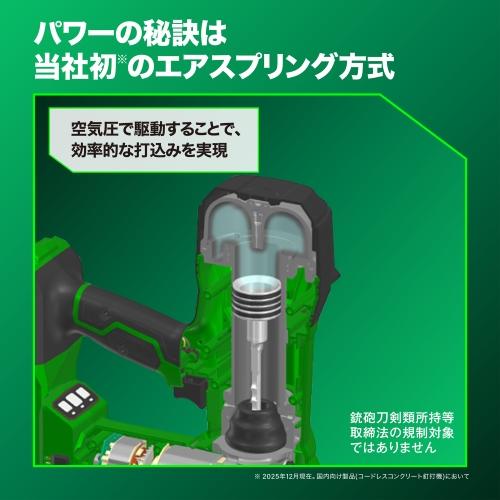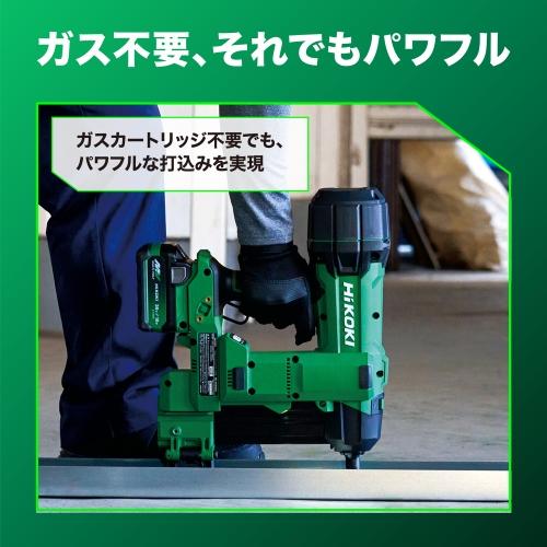 ●メーカー…HiKOKI ●型番…NC1840DA(2XPZ) ●電源…マルチボルト蓄電池×2個(付属) ●電圧…18V/5.0Ah ●サイズ…120×333×400(H)mm(EA813HF-17B装着時) ●釘装てん数…25本(2連+5本) ●充電時間…実用充電:約19分 満充電:約25分 ●モーター…直流ブラシレスモーター ●重量…4.9kg(EA813HF-17B装着時、フック含まず) ●付属品…充電器、バッテリー×2、収納ケース、保護メガネ、電池カバー×2 ●LEDライト…白色LED ●【ガスカートリッジいらずで安定した打込み力】 ガスカートリッジを使わずエアスプリング方式を採用し、排気が出ないため屋内でも快適に使用可能。 燃焼式ではないため、寒冷地や高地などの環境に左右されにくく、安定した打込みを実現します。 ●空気圧で駆動することで、効率的な打込みを実現、H鋼などの鋼材下地にも直接打込めるパワーで、内装施工をはじめ幅広いシーンで活躍します。 ●【安定の打ち込み力で実現する連続作業】 1充電当たりで約620本打込み可能。断続作業は約1.5本/秒で進行。ガスカートリッジ交換不要で中断が減り、ランナー固定など連続作業でも安定したペースを維持します。(※付属電池使用時) ●【まっすぐ打てる開閉式スタビライザ】 安定した垂直打込みを補助し、不要な場面ではすばやく折りたためます。 ●暗所でも作業部を照らせるLEDを内蔵し、視認性を確保して安全に作業できます。 ●【材料に合わせて 仕上がりを調整】 アジャスタレバーで打込み深さを簡単に調整でき、材料への過剰打込みを防ぎます。 ●工具や蓄電池をまとめて収納できる専用ケースを付属し、運搬や保管に便利です。 ●※ロングマガジン(EA851ZG-21)使用時、コンクリート釘は45本装てん可能 ●※適用コンクリート釘は下記のその他関連商品をご覧ください。 ●参考在庫数・商品詳細・サイズ情報はメーカー(参考)URLからもご確認いただけます。 ●最小出荷単位: 1