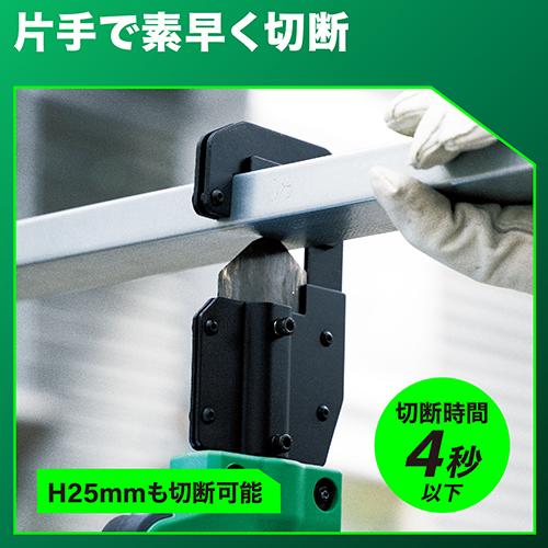 ●メーカー…HiKOKI ●型番…CE18DYMA(BH) ●切断能力…CW-19(19×50mm) CS-19(19×25mm) CW-25(25×50mm) CS-25(25×25mm) ●1充電当たりの作業量目安(BSL1820M使用時)…CW-19:約320カット CS-19:約380カット CW-25:約250カット CS-25:約300カット (※数値は参考値です。材料や条件により異なります。) ●使用可能蓄電池…マルチボルト蓄電池、18Vリチウムイオン電池(BSL18XXシリーズ) ●電圧・容量…18V-2.0Ah ●充電時間…約20分(満充電) ●サイズ…491×88×138mm (BSL1820M装着時) ●重量…2.5kg (BSL1820M装着時) ●付属品…・ツールバック ・ブレード(本体装着) ・2ポート充電器(EA813H-26) ・電池カバー ・六角棒スパナ(3mm) ・低頭ねじM5 ・チェンジプレート ・18Vリチウムイオン電池(BSL1820M) ●切断作業を電動化。片手操作で部材を押さえながら、安全作業をサポートします。 操作荷重はスイッチを押すだけなので、楽に切断できます。(切断時間:4秒以下) ●高所で体勢を気にせず作業が行えるよう、刃先が360°回転します。 ●狭所での取り回しがしやすいよう、軽量・コンパクトを実現。片手でも楽に操作できます。 ●天井裏など暗い場所での作業に便利なLEDライト付 ●作業中の仮置きに便利な大型フック付 ●工具の持ち運びに便利な大容量バッグ、ショルダーベルトで移動・収納が簡単です。 ●急速充電器でマルチボルト蓄電池や10.8Vリチウムイオン電池が充電可能です。 ●参考在庫数・商品詳細・サイズ情報はメーカー(参考)URLからもご確認いただけます。 ●最小出荷単位: 1